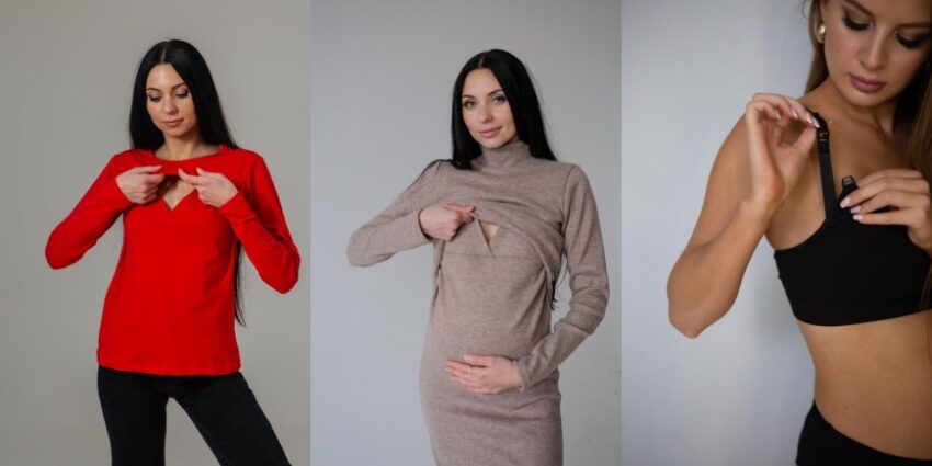 Хорошо подходят многослойные варианты, когда можно приподнять верхний слой и получить доступ к груди, не раздеваясь полностью. Также полезны вещи с продуманными вырезами, которые не бросаются в глаза и выглядят как обычная повседневная одежда.