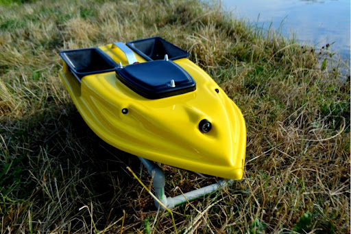 Карповий кораблик — це радіокерований пристрій з електродвигуном, акумулятором і контейнером для прикормки. Він працює за принципом дистанційного керування, як невеликий катер.